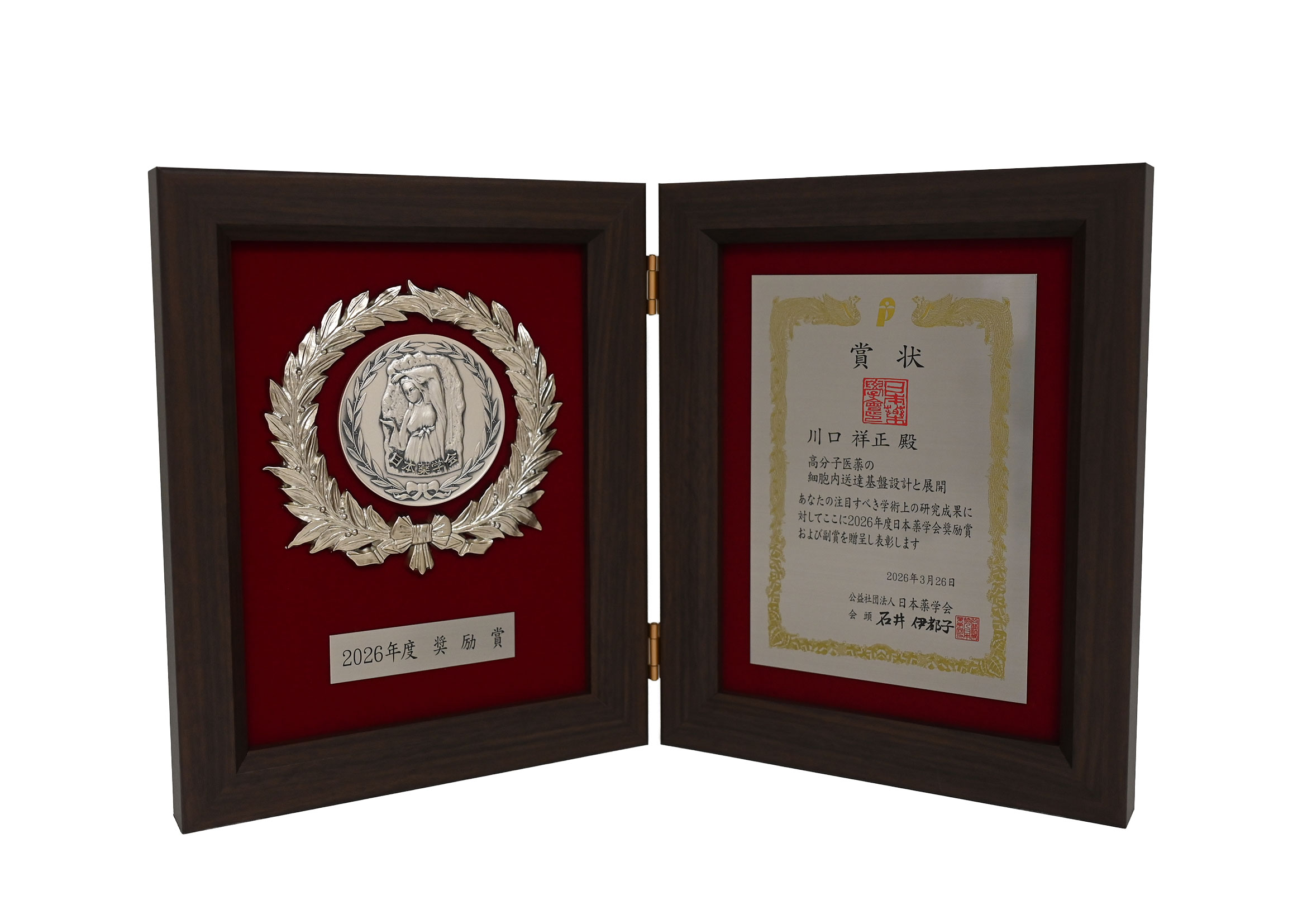 令和8年3月26日、川口祥正 助教が日本薬学会2026年度 奨励賞を受賞しました。