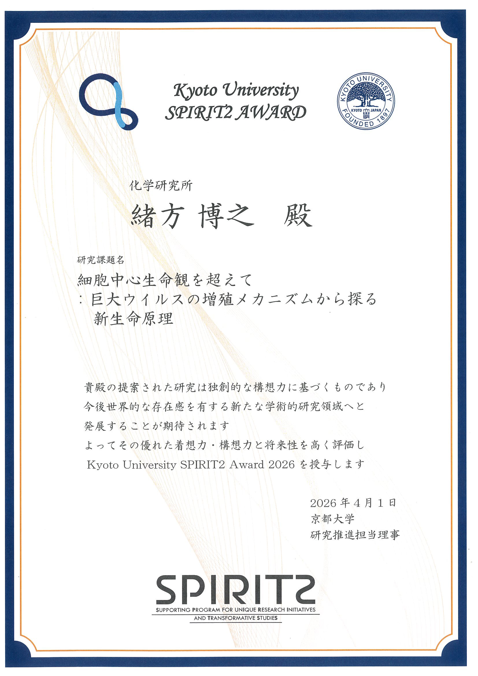 緒方博之 教授がKyoto University SPIRIT2 Award 2026を受賞しました